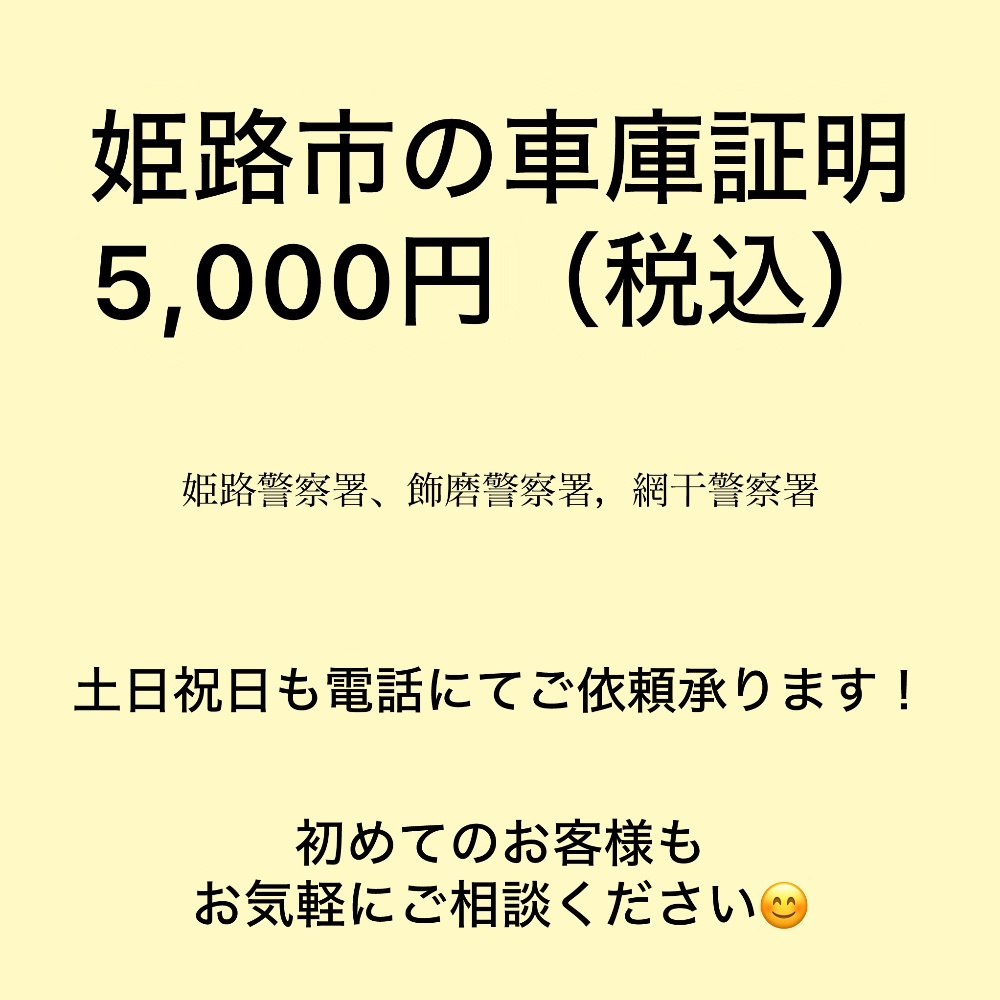 車庫証明が必要だけど平日に警察へ行く時間の取れない一般ユーザー様や姫路で行政書士をお探しの県外市外自動車販売店様まで、弊所はお客様ごとのご要望に合わせて臨機応変に対応いたします。親しみやすさを感じていただける対応を心がけてますので、姫路での車庫証明取得の際はお気軽にお問い合わせください。どうかよろしくお願いいたします。